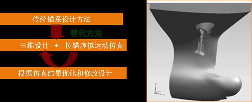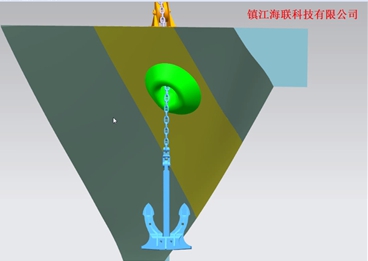 經(jīng)過與國內(nèi)行業(yè)權(quán)威設(shè)計院的合作過,并將該技術(shù)應用于船舶建造中,對錨鏈筒、錨臺、錨唇、錨穴、錨、錨鏈、錨機、止鏈器、導鏈滾輪、船體等進行三維設(shè)計和自動建模,實現(xiàn)了三維錨系計,保證了錨系設(shè)計中空間位置定位的準確性,并通過三維軟件導出二維CAD圖紙,扭轉(zhuǎn)了一直以來二維圖紙與船廠錨系施工脫節(jié)的局面,極大提高了錨系設(shè)計的效率。除此之外,利用軟件的后期的仿真功能,模擬并預報收錨過程的動態(tài)效果并給出調(diào)整方案。